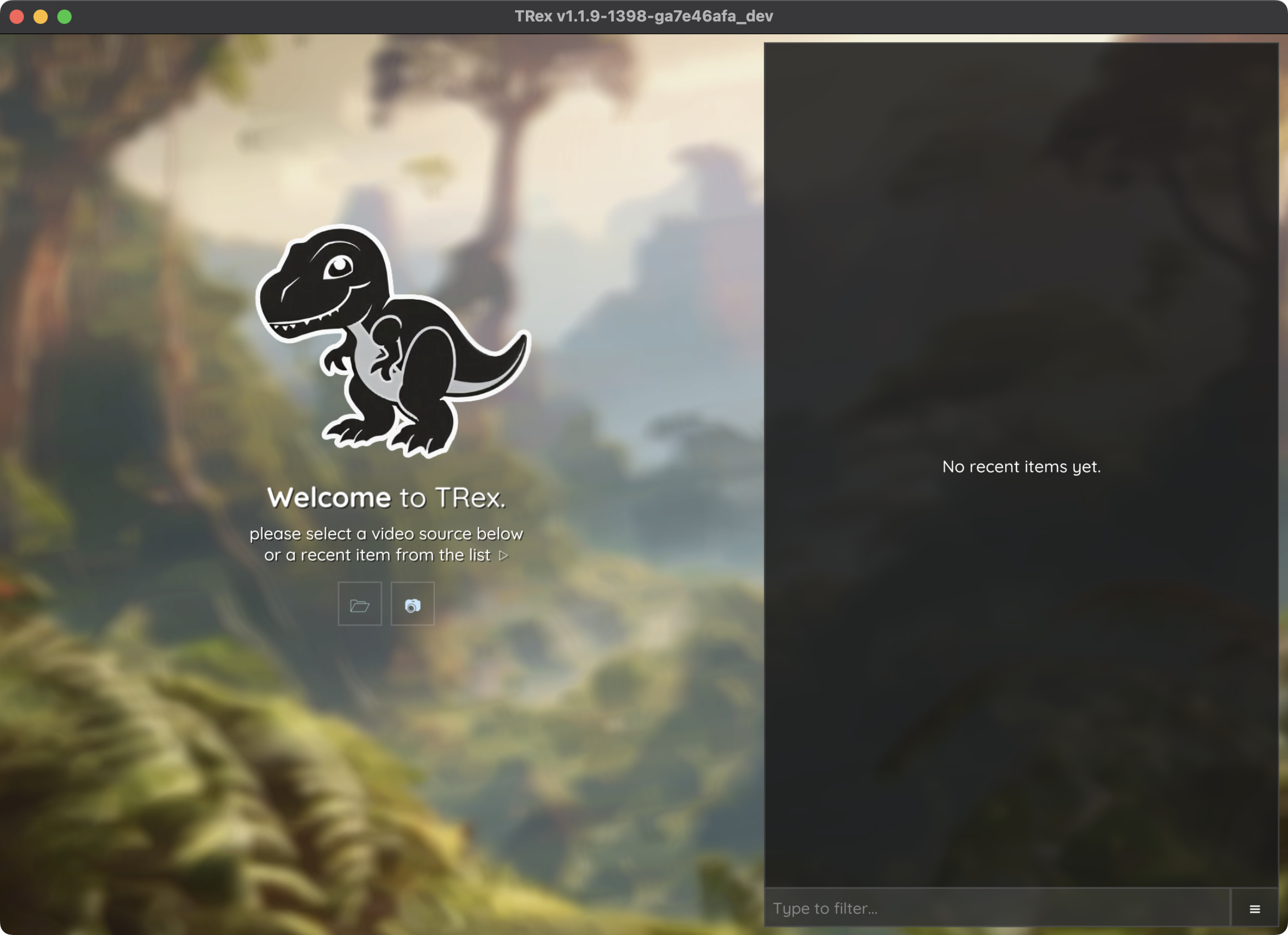Figure 1 The TRex graphical user interface (GUI) showing the welcome screen.